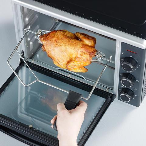 Met praktische draaispit met aparte greep voor vlees en gevogelte