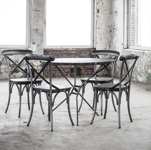 vervaardigd uit massief mangohout. Het hout heeft een unieke patine finish dat ervoor zorgt dat het model niet overal dezelfde kleur of schakering heeft. Dankzij deze afwerking krijgt de stoel een gave vintage-look. Eetkamerstoel Rift is verder uitgevoerd in een stalen frame en rugleuning.